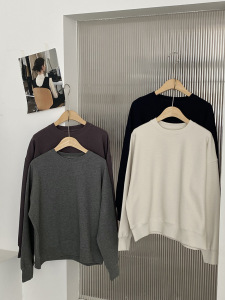 秋冬新款肌理棉老钱风卫衣女韩版圆领显瘦百搭T恤女显瘦打底外套
