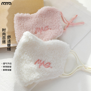 冬季仿羊羔绒加厚保暖口罩女高颜值骑行防风防寒冻可水洗舒适透气