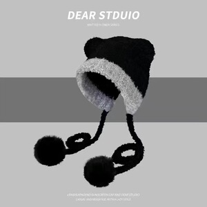 5新可爱小熊耳朵针织毛线帽女毛绒帽子秋冬季保暖护耳大头围