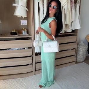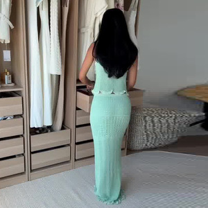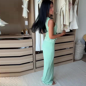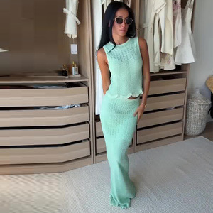 2025年夏新款欧美亚马逊跨境外贸女装现在无袖圆领浅绿色针织套装