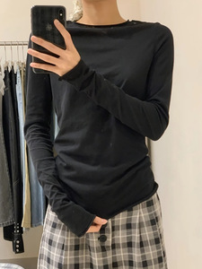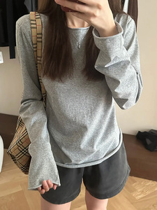 卷边淡紫色打底衫春秋季修身甜辣ins长袖上衣薄款防晒罩衫百搭T恤