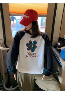 莉贝琳sisy店主自留花花世界插肩袖T恤秋季新全棉撞色长袖T恤女