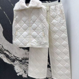 深圳南油直供25年冬季格子翻领马甲高腰修身显瘦休闲裤时尚套装