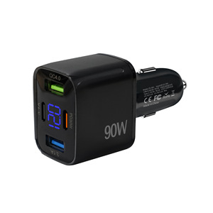 数显快充PD+QC3.0跨境车充多功能四口90W车载充电器工厂直销闪充