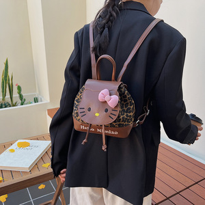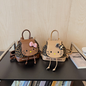 跨境双肩包包女2025新款可爱少女复古豹纹猫咪书包洋气女生小背包