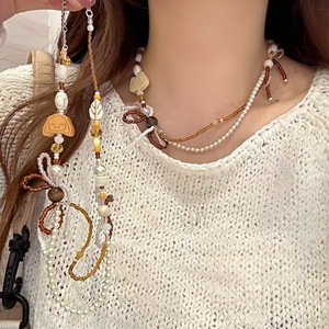 2025秋冬新款可爱卡通蝴蝶结串珠多元素吊坠项链简约百搭锁骨链女