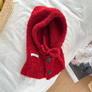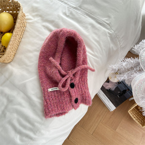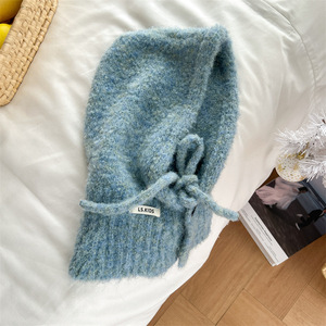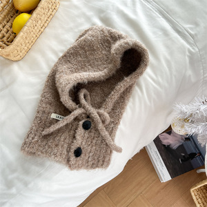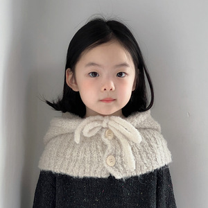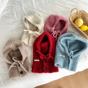 一潘 儿童帽子围巾一体帽冬季新款字母标针织宝宝保暖围脖包头帽