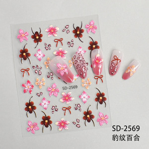 跨境爆款豹纹美甲贴纸秋冬季新款法式豹纹系列5D浮雕指甲贴纸批发