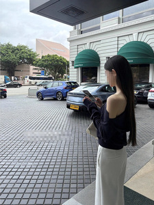 藏青色斜肩款