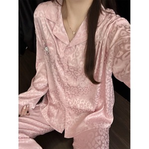纯欲甜美卡通Kitty豹纹提花睡衣女秋季新款可爱粉宽松家居服套装