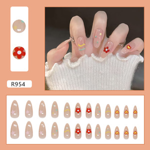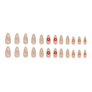 甜美红色小花清新线条波点星星百搭少女可拆卸穿戴甲24片