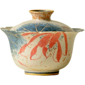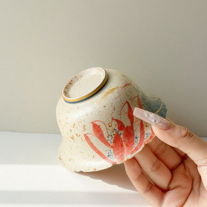 墨己焦糖釉手绘莲花仿古陶瓷盖碗功夫茶具家用花口盖碗家用泡茶碗