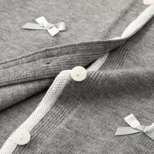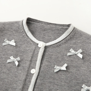 2025秋冬季新款撞色蝴蝶结单排扣宽松针织开衫毛衣女1FA132341