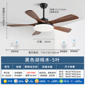 吊杆5叶-黑色胡桃木【普瑞全光谱100W】