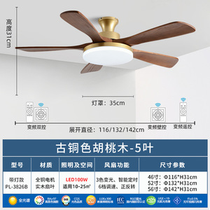 吊杆5叶-铜本色胡桃木【普瑞全光谱100W】
