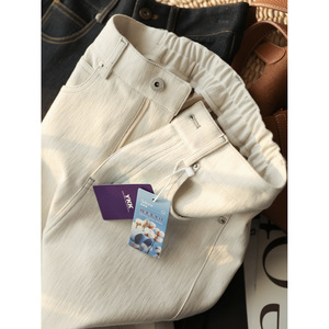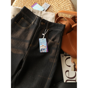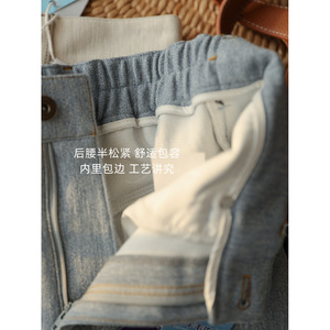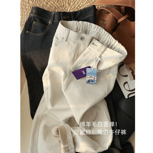 梨型巨遮胯!绵羊毛四面弹弯刀牛仔裤 高腰显瘦宽松休闲长裤女秋