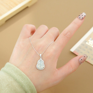 粉锆蝴蝶项链(不锈钢镀白金色)