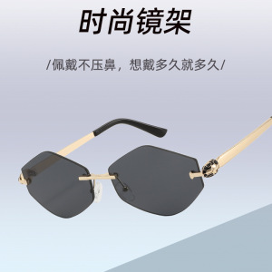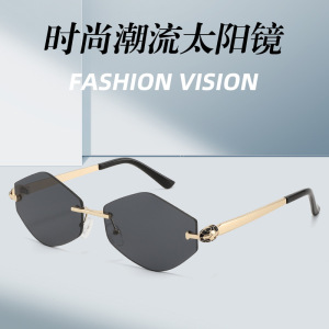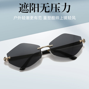 跨境大牌平替太阳镜无框菱形复古墨镜小框明星款太阳眼镜旅游防晒
