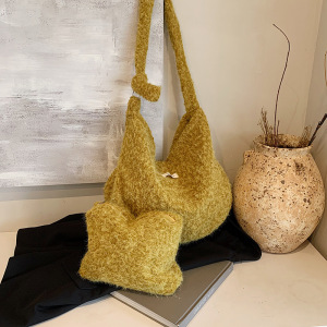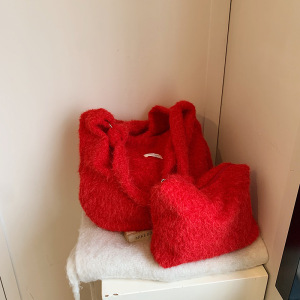 韩系秋冬新款毛绒包2025新款时尚百搭大容量托特包小众休闲包包女