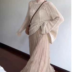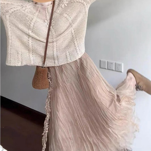 气质一整套ootd穿搭慵懒松弛感复古针织上衣半身裙两件套装2025秋