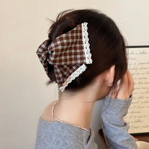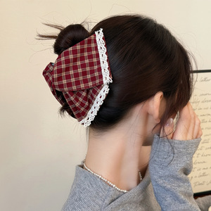 蕾丝花边格纹三角抓夹甜美网红款盘发鲨鱼夹少女心高级感发夹头饰