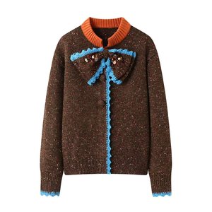 现货2025秋季新款宽松复古撞色亮片蝴蝶结针织开衫女LF25Q51ZC119