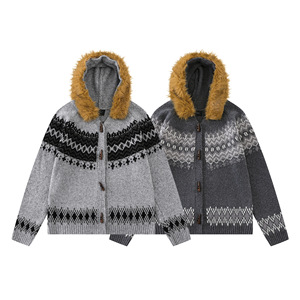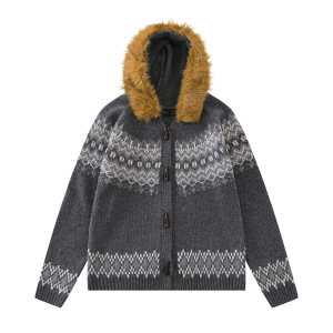 Eon Modish 25冬季New美式复古费尔岛针织毛领可拆卸连帽毛衣开衫