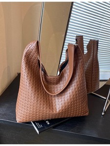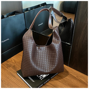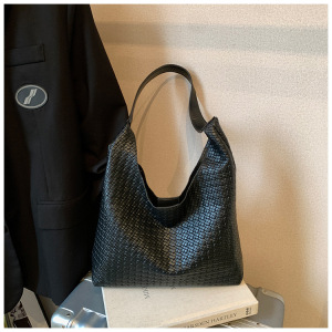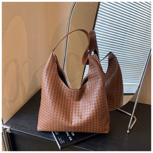 2025跨境女包大容量纯色单肩包流行百搭外贸批发编织纹腋下水桶包