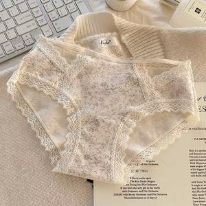 纯棉内裤女生10A抑菌加长裆田园风碎花少女中腰包臀纯棉裆三角裤