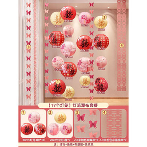 吾家婚品婚房氛围感布置结婚灯笼套装拉花装饰婚礼长条喜字挂饰