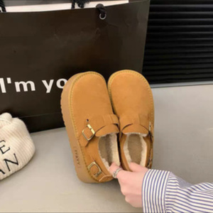 厚底勃肯鞋女冬季加绒一脚蹬乐福豆豆鞋2025新款懒人毛毛雪地棉鞋