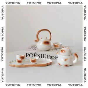 胖喵喵小茶壶套装【4茶杯+托盘】