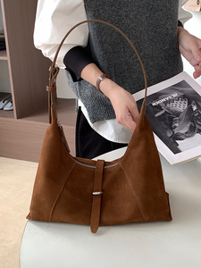 小众复古风麂皮包2025新款反绒头层磨砂牛皮饺子包真皮hobo腋下包