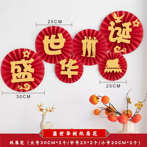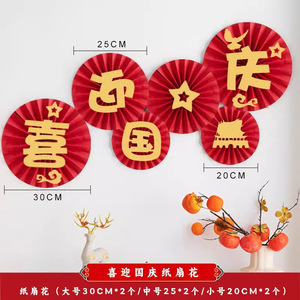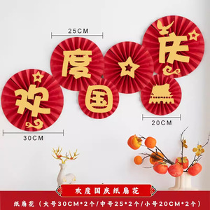 国庆节装饰品商场橱窗场景布置背景挂饰中秋节节日氛围装扮纸扇花