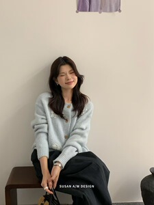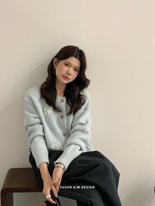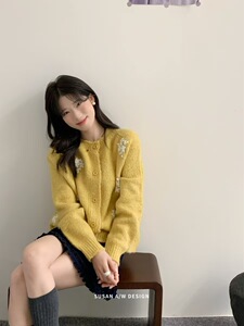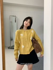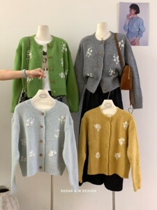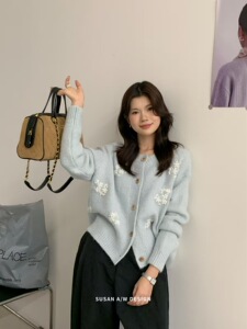 苏珊 韩系手工花朵针织衫开衫女秋季设计感重工毛衣外套上衣27115