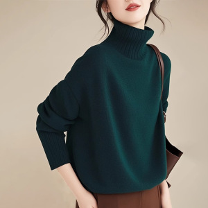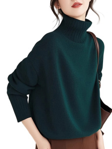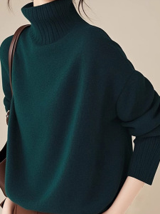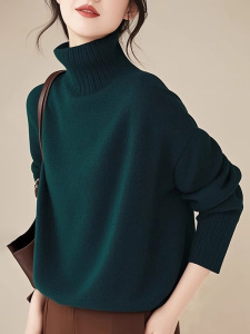 墨绿色高领毛衣