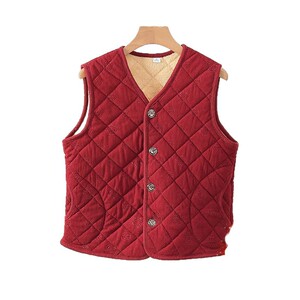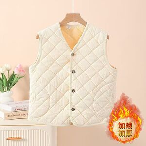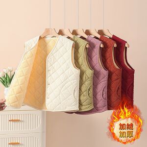 加绒加厚菱格纹保暖马甲秋冬新款时尚妈妈背心保暖坎肩马夹外穿