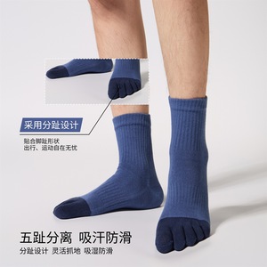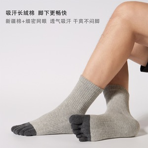 五指袜男春秋冬季中长筒精梳棉袜吸汗分脚趾袜男士袜子纯色透气厚