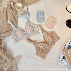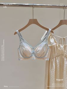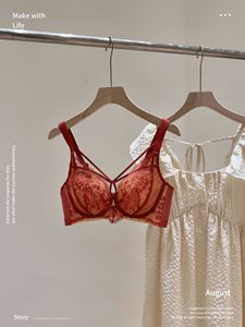 超薄蕾丝内衣女大胸显小收副乳防下垂兔耳背心文胸全罩杯夏季