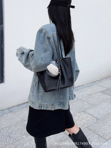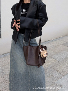 韩版复古植鞣皮菜篮子包女慵懒松弛感单肩包真皮大包大容量托特包