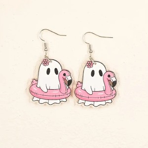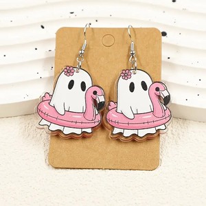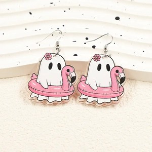 新款万圣节幽灵耳环平面亚克力创意可爱卡通粉色火烈鸟游泳圈耳饰