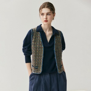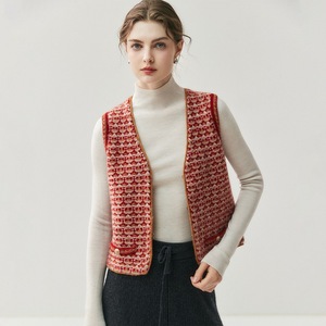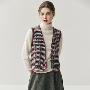 设计师款!秋冬款女士气质羊绒马甲女小香风V领提花羊绒坎肩开衫