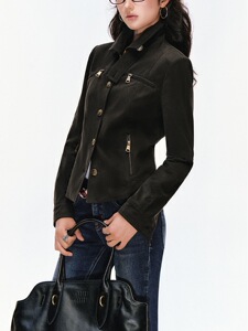 立领修身复古夹克知识分子正肩气质外套收腰显瘦短上衣