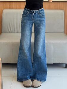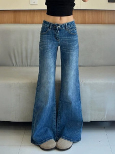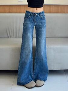 【韩牛】微喇牛仔裤女秋季新款梨形身材小个子胖mm显瘦阔腿微喇裤