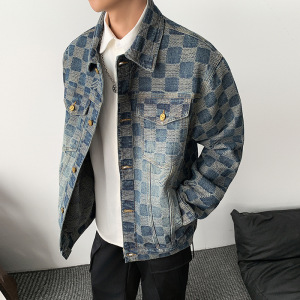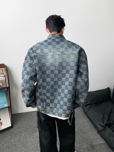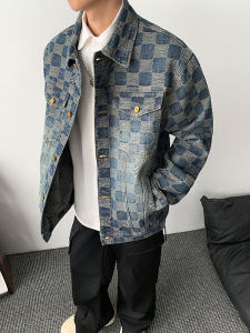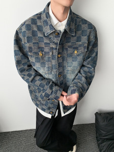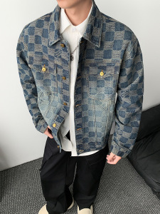 新款男装休闲夹克春秋季外贸潮流棋盘格轻奢男女同款宽松牛仔外套