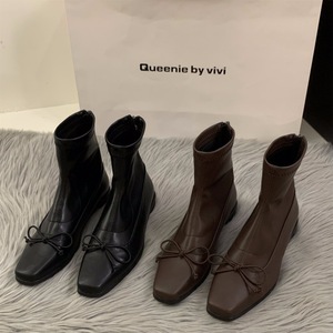 粗跟方头黑色马丁靴女鞋2025新款秋冬季加绒瘦瘦短靴韩系小踝靴子