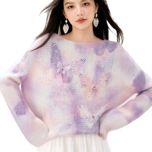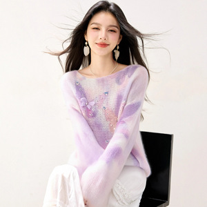 秋冬紫色气质设计感圆领长袖针织衫法式小香风小众宽松显瘦上衣潮