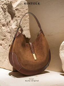 跨境女腋下包麂皮绒马术设计饺子包托特包潮流爆款手提月牙包