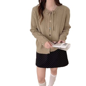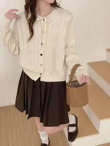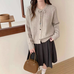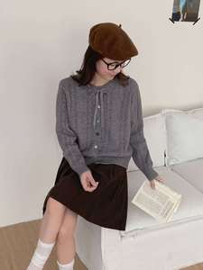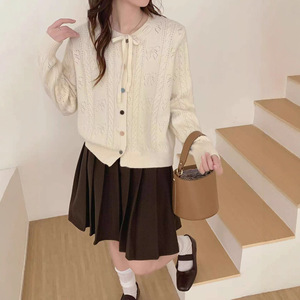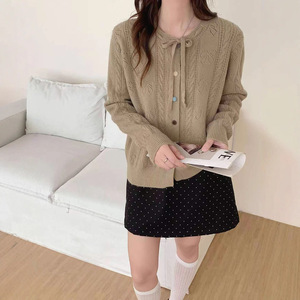 甜美蝴蝶结镂空休闲百搭针织开衫女新款百搭洋气减龄短袖t恤上衣