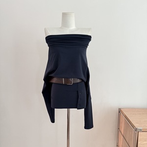 蓝调鸢尾 韩系气质一字肩连衣裙女收腰显瘦裙子